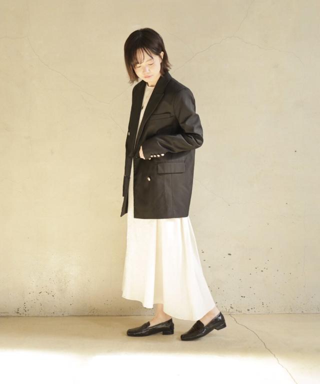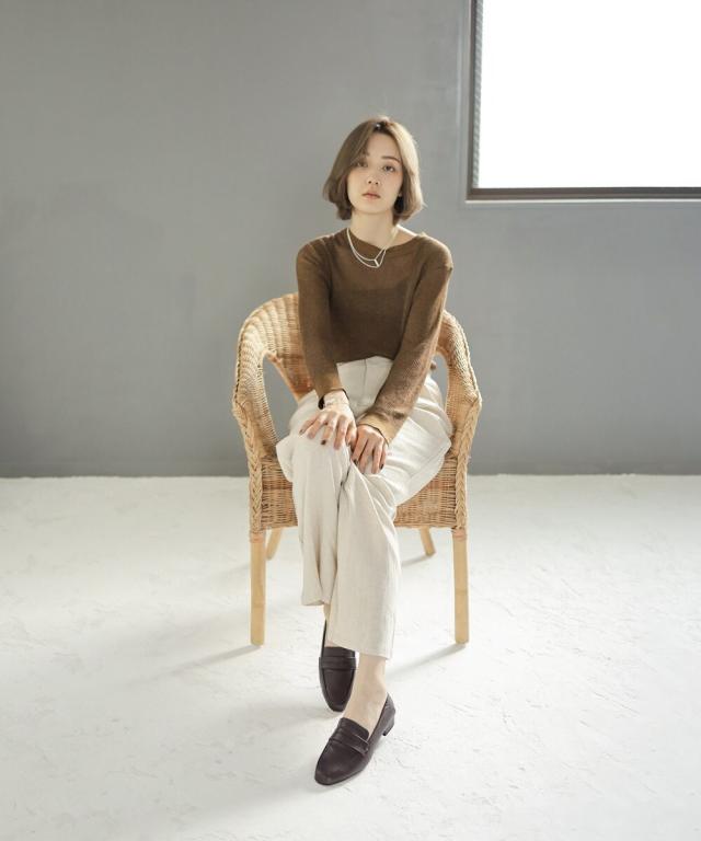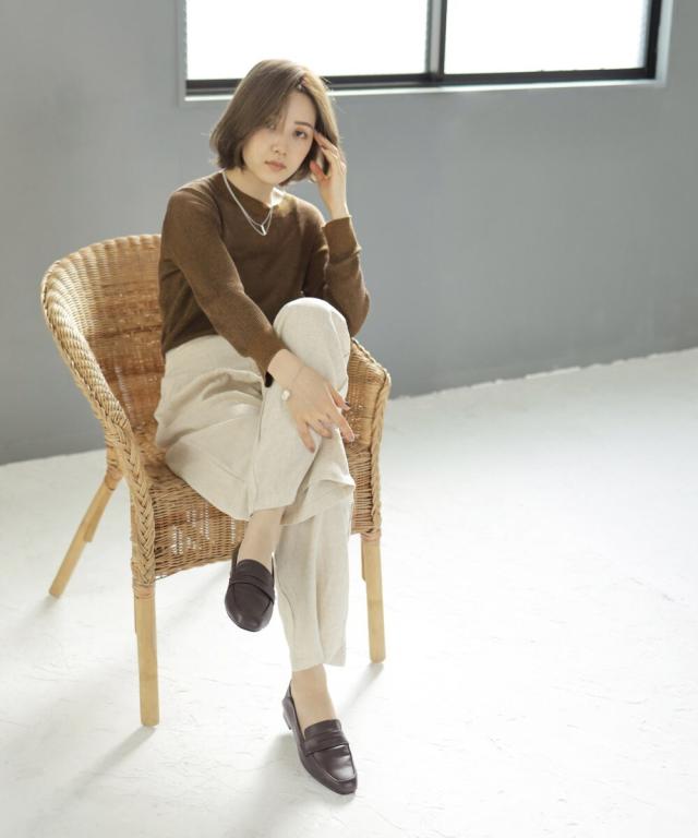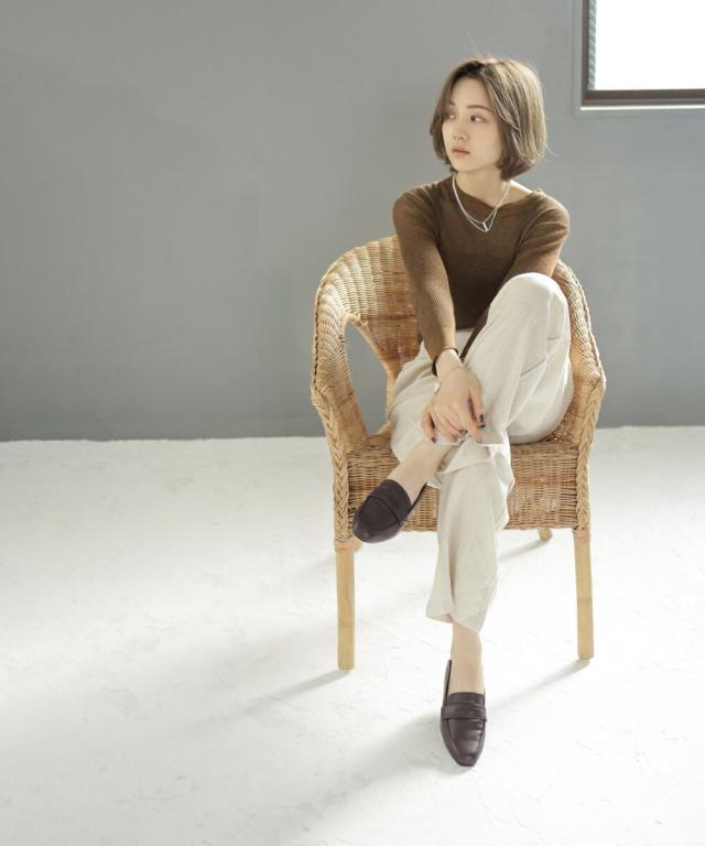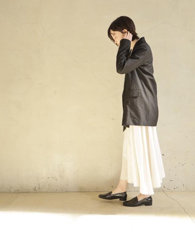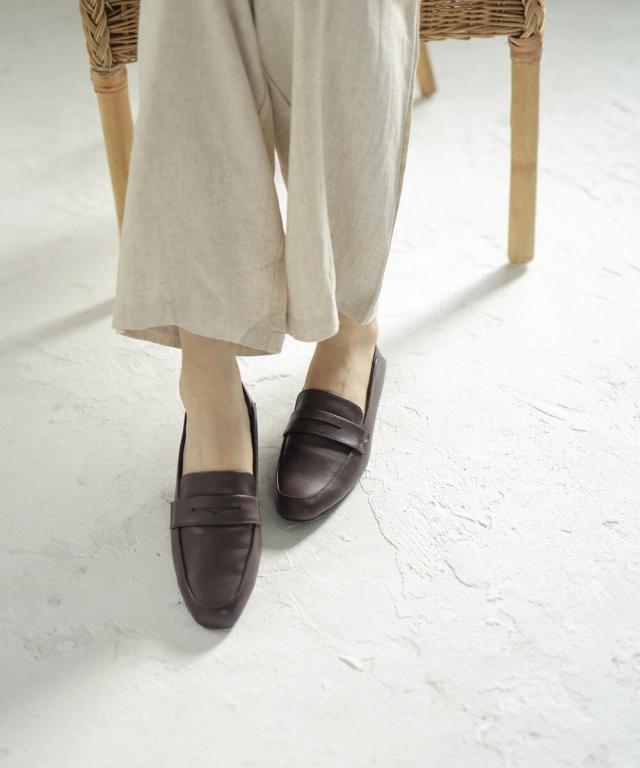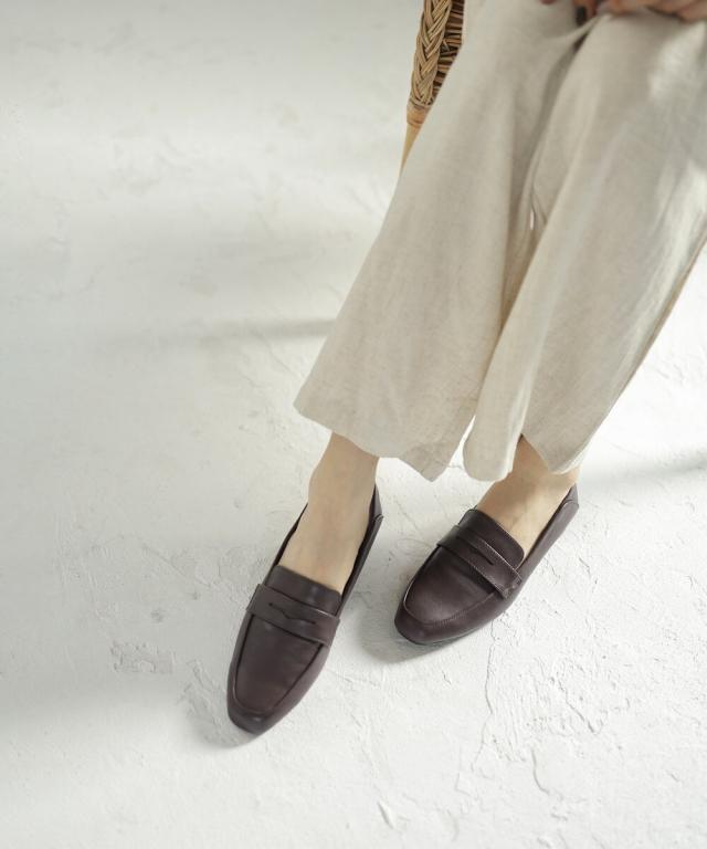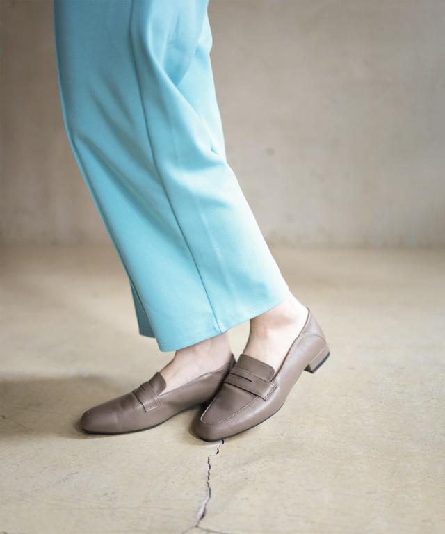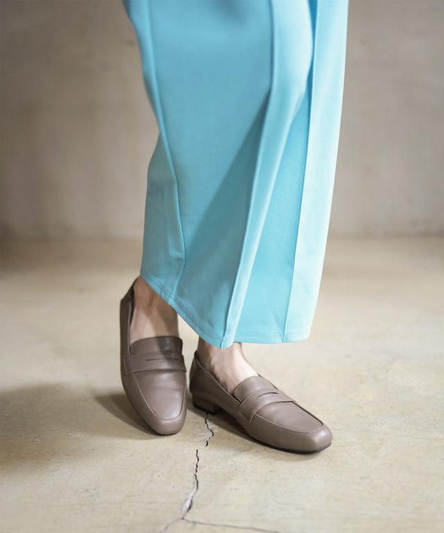 すっきりシェイプされたローファーは軽やかなルックスでパンツだけでなくスカートとも相性良好。
