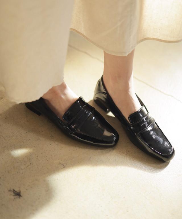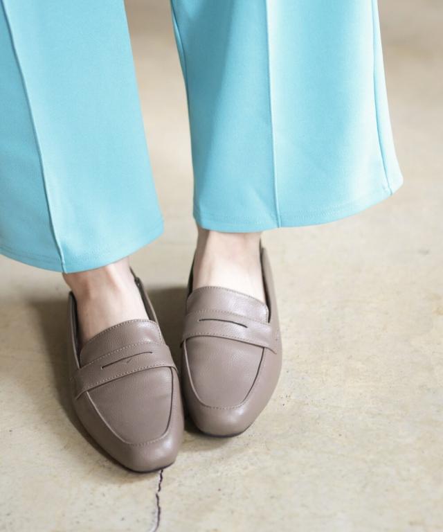 かかとが踏めるバブーシュタイプのスクエアトゥコインローファー