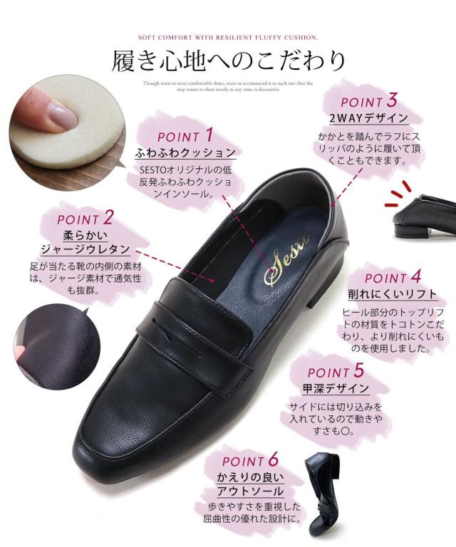 セスト(SESTO)/かかとが踏めるバブーシュタイプのスクエアトゥコインローファー