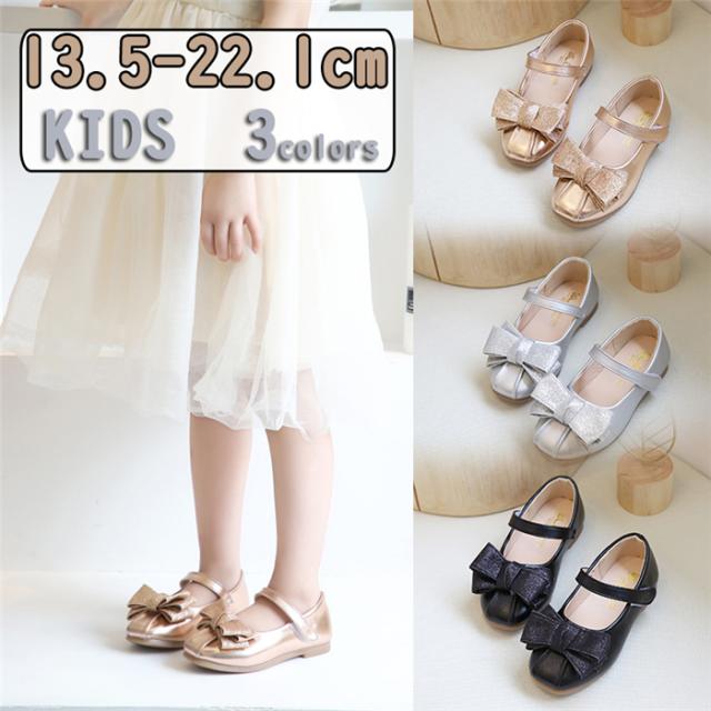 リボン付け フォーマルシューズ 女の子 子供靴 キッズ靴 ジュニアシューズ ガール パンプス ベビー カジュアル 赤ちゃん パンプス 軽量 通気 13.5-22.1cm スリッポン
