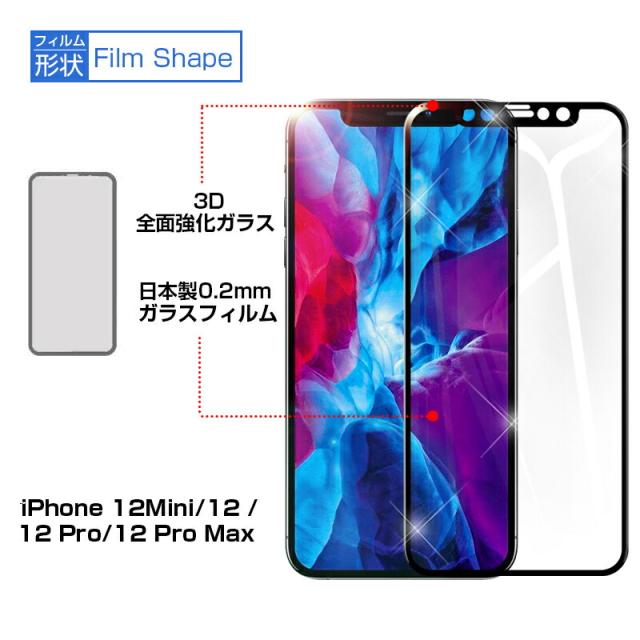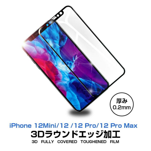 iPhone12mini iPhone12 iPhone12 Pro iPhone12 Pro Max 強化ガラスフィルム 液晶保護 全面保護シール 3D ガラスカバー スマホ画面保護 ガイド枠付き