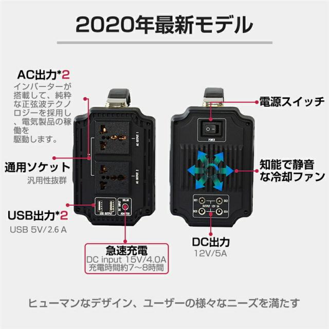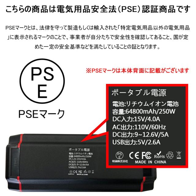 ポータブル電源 大容量64800mAh/240Wh 家庭用蓄電池 純正弦波 AC/DC/USB出力 電量表示 ソーラー充電 ポータブル 生活家電充電 PSE認証済