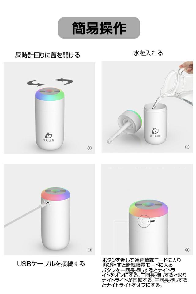 加湿器 卓上加湿器 ミニ加湿器 車載加湿器 超音波式 ナノミスト噴霧 5時間連続噴霧 10時間間歇噴霧 超静音 超軽量 USB充電式 空焚き防止 ナイトライト 7色LEDライト