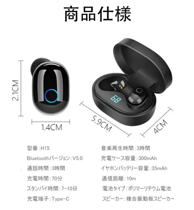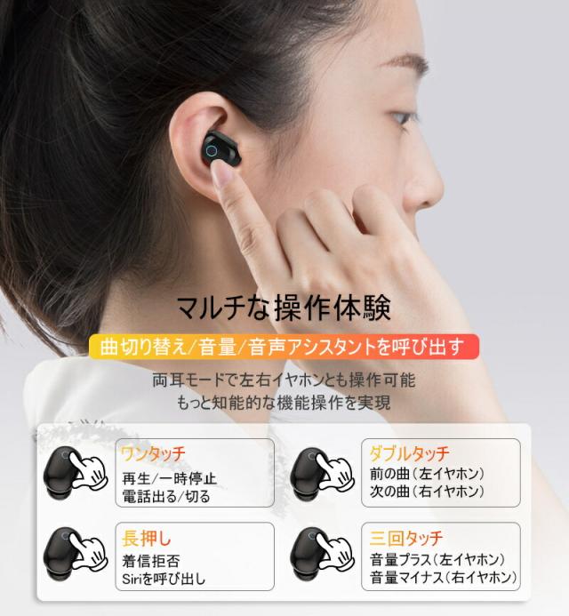 Bluetooth5.0自動ペアリング 最先端の無線通信技術と最新知能チップを採用しており、従来バージョンより更に高速データ伝送でき、音の途切れ、遅延などの問題を改善し、接続安定性を高めます。自動ペアリング機能が付きます、簡単接続可能です。2度目以降の使用は、ケースからイヤホンを取り出すだけで自動的にペアリング設定済みのデバイスと再接続できます。タッチコントロール タッチコントロール式bluetoothイヤホン、高感度なパネルと高品質な部品を採用し、タッチパネルをタッチするだけで、音楽再生/一時停止、通話開始/終了/拒否/次の曲/Siri起動などの操作をすべて実現可能。極めて軽量、カナル型 もっと軽量化にしたデザイン、方イヤホンわずか4g、コインより小さくて市販タイプの半分ぐらいで、長時間装着しても耳が痛くない!耳の輪郭に完璧合致するカナル型設計で、耳としっかり噛み合います。その他ノイズリダクション技術を採用し、音声漏れることがありません。3ケ月の安心保証 お買い上げ日より3ケ月の安心保証が付いております。カラー ブラック、ホワイト パッケージ内容 イヤホン、充電&収納ケース、充電ケーブル、日本語取扱説明書 |