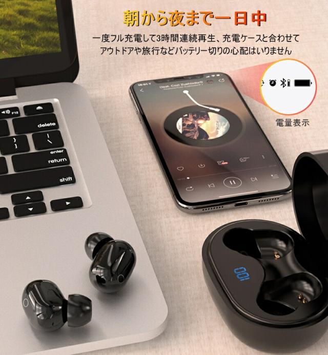 ワイヤレスヘッドセット Bluetooth5.0 イヤホン ワイヤレスイヤホン 防水 自動ペアリング 自動ON/OFF 両耳 TWS 左右分離型 Hi-Fi高音質 残電量表示 日本語音声 送料無料