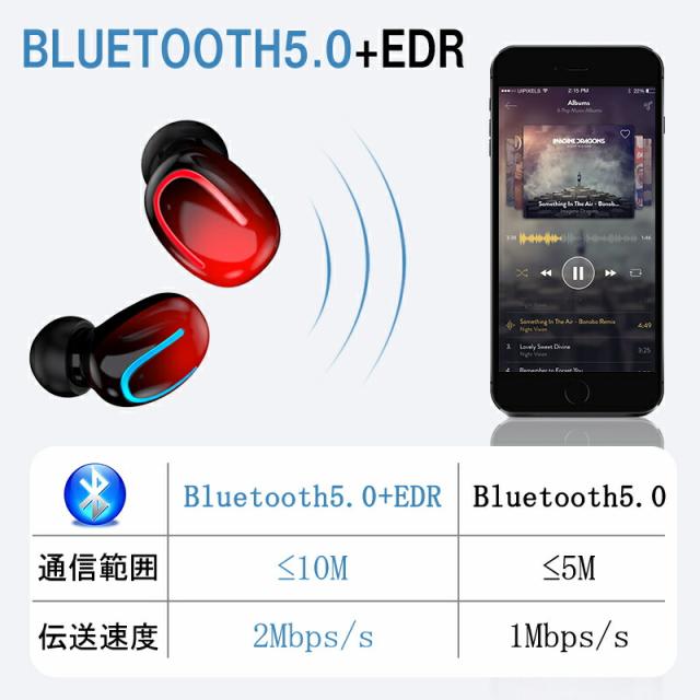 最新Bluetooth5.0+EDR搭載 最先端のBluetooth 5.0+EDRが搭載されているため、データ伝送速度が従来の2倍になり、通信容量が8倍に増やします。まさに高速・安定かつ途切れのない接続体験が実感できます。高音質 ダイヤフラムを採用し、エコー除去、音質が良くて、音楽再生の時、曲調に合わせてより好み重低音サウンドを楽しんだり、低音のビート感を捉えることでスポーツやワークアウトに没頭できます。フィット感抜群 人間工学に基づき、装着安定に工夫し、片耳で僅か3gだけで、長時間着けても重さを感じせず、激しい運動や複雑の体勢でも落ちにくい。左右分離型なので、両耳で使用することはもちろん、単独で使用することも問題ないです。優れた互換性 最先端なチップが搭載され、IOSシステムのiPhone /iPad、またはAndroidシステムのスマホ/デバイス、PCなどBluetooth機能付きのデバイスを全般にサポートします。カラー ブラック、グレー パッケージ内容 充電収納ケース、イヤホン、充電ケーブル、日本語取扱説明書、イヤピースセット。