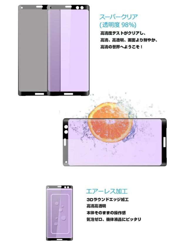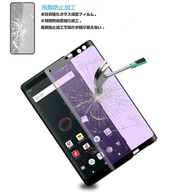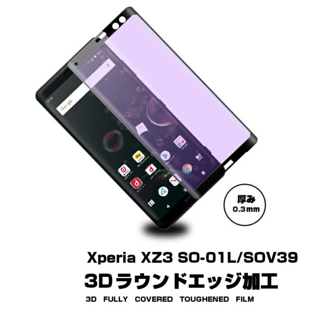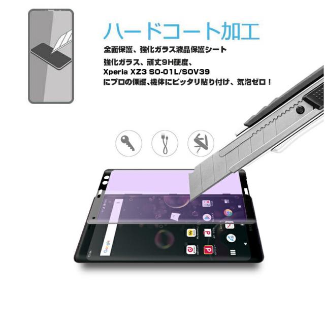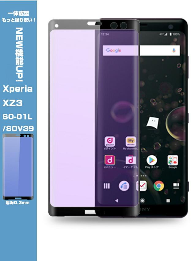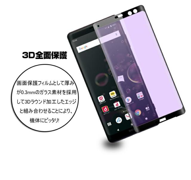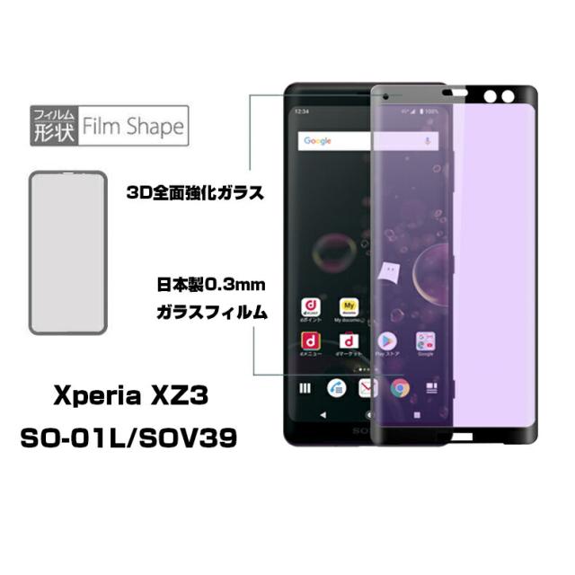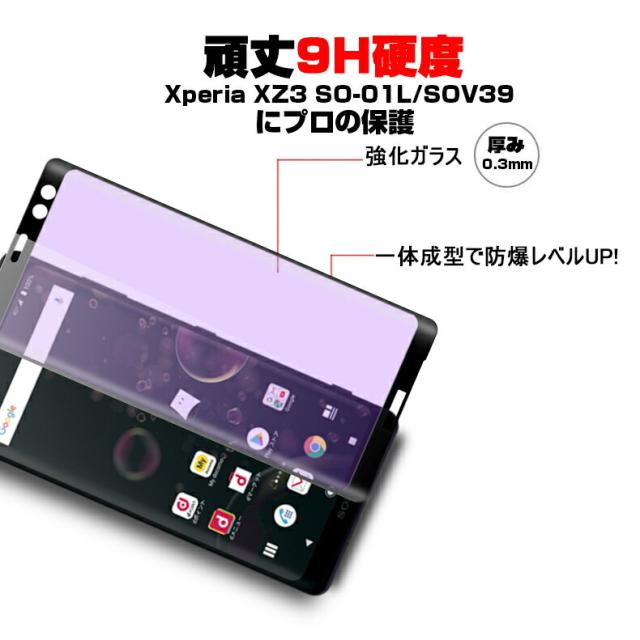 Xperia XZ3 SO-01L SOV39 ブルーライトカット 3D全面保護 強化ガラスフィルム Xperia XZ3 SO-01L 液晶保護ガラスフィルム Xperia XZ3 SOV39 強化ガラスフィルム 曲面 Xperia XZ3 SO-01L 強化ガラス保護フィルム Xperia XZ3 SOV39 保護フィルム 硬度9H 厚み0.3mm