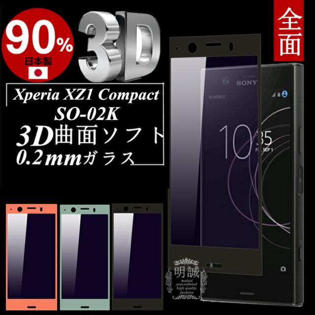 Xperia XZ1 Compact SO-02K 3D全面保護 ブルーライトカット 強化ガラス保護フィルム SO-02K 極薄0.2mm 3D 曲面 XZ1 Compact 全面ガラス保護フィルム ブルーライトカット Xperia XZ1 Compact ソフトフレーム SO-02K ソフトフレーム SO-02K 全面保護 送料無料