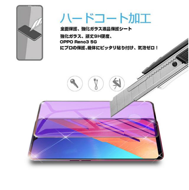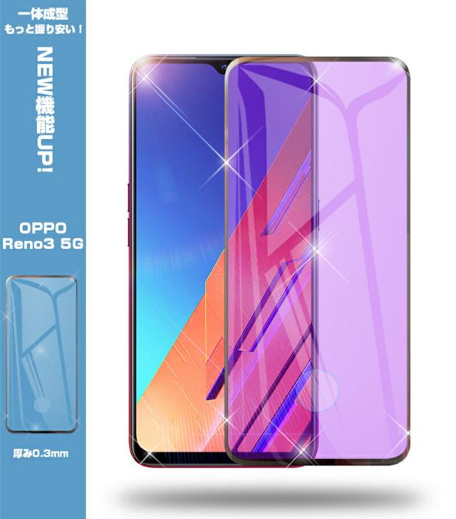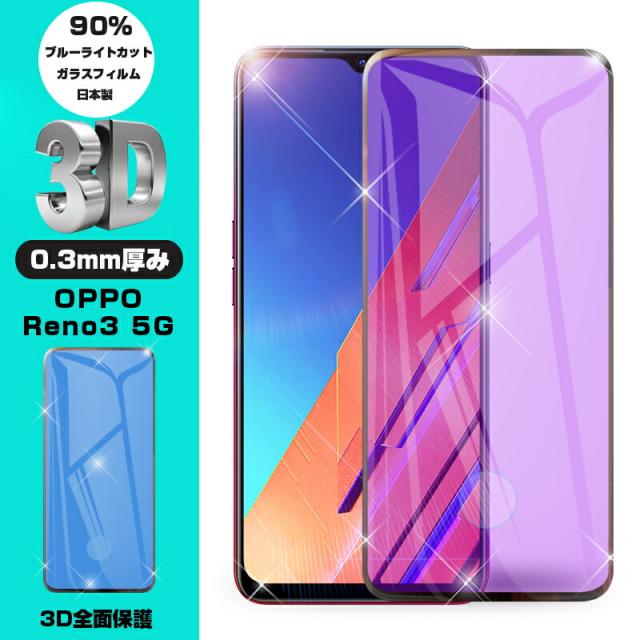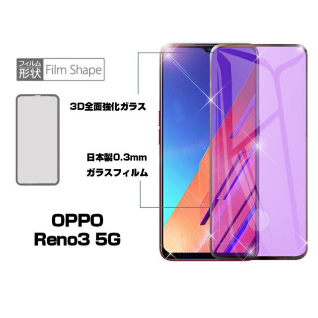 OPPO Reno3 5G 強化ガラス保護フィルム ブルーライトカット softbank 液晶保護ガラスシート 3D全面保護 シール 画面保護 ガラス保護シール スクリーンシート 傷防止 ガラス膜 スマホフィルム