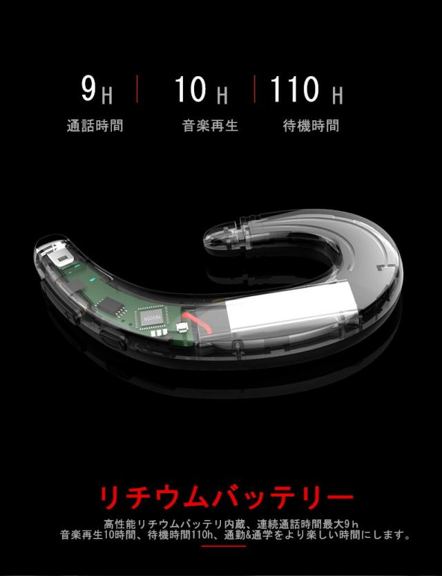 高性能リチウムバッテリ内蔵、連続通話時間最大9h、待機時間110h、通勤&通学をより楽しい時間にします。また、ISOシステムスマホのホーム画面の上にヘッドセットのバッテリー残量が表示されます、電池残量不足心配せずご使用いただけます。