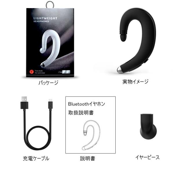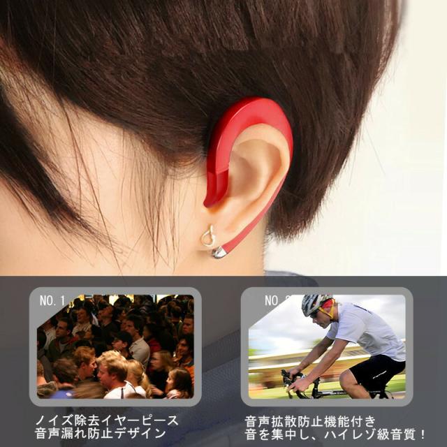 商品は耳を塞がずブルートゥース イヤホンです、骨伝導イヤホンではありません。耳の骨を振動させる必要はなく、骨伝導ヘッドフォンより快適し健康です。