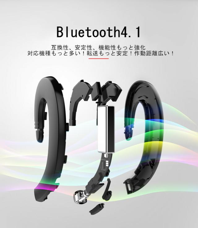 Bluetooth 4.1 超高音質 ワイヤレスイヤホン 片耳 耳掛け型