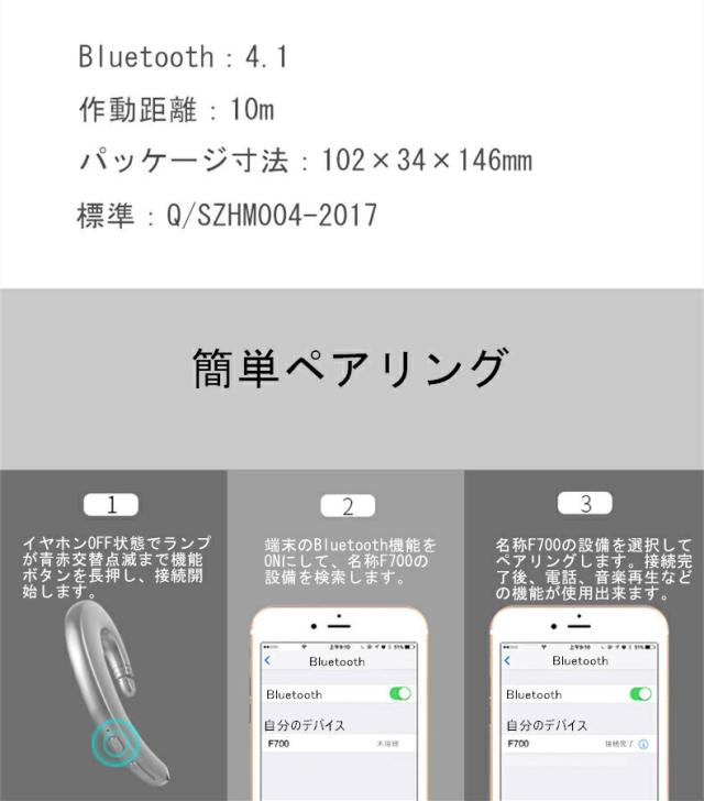 Bluetooth 4.1 ワイヤレスイヤホン ヘッドセット 片耳 高音質 耳掛け型 ブルートゥースイヤホン マイク内蔵 スポーツ ハンズフリー 通話可 日本語音声通知 iPhone&Android対応 iPhone XS Max iphone8 plus iphone7 Xperia Galaxy S9 GalaxyS8 AQUOS Android対応