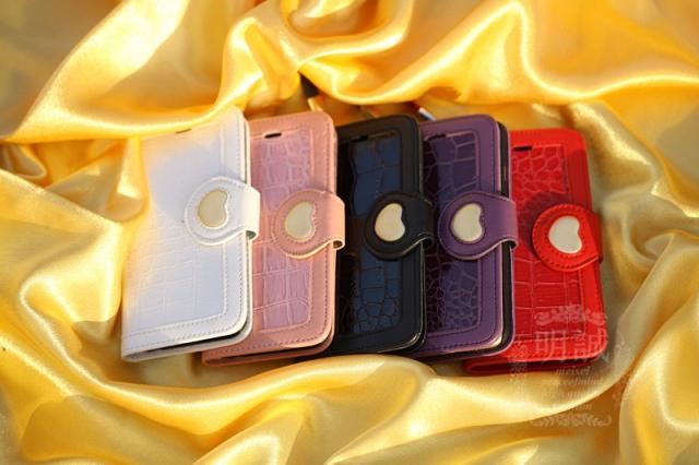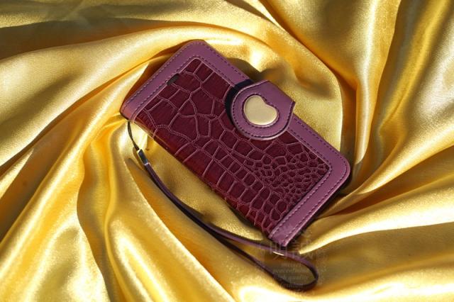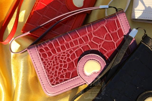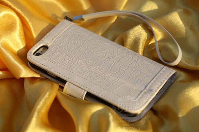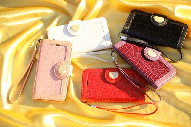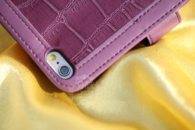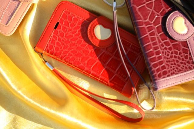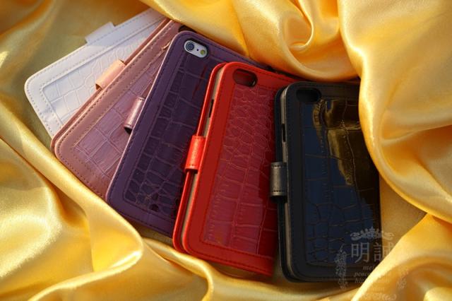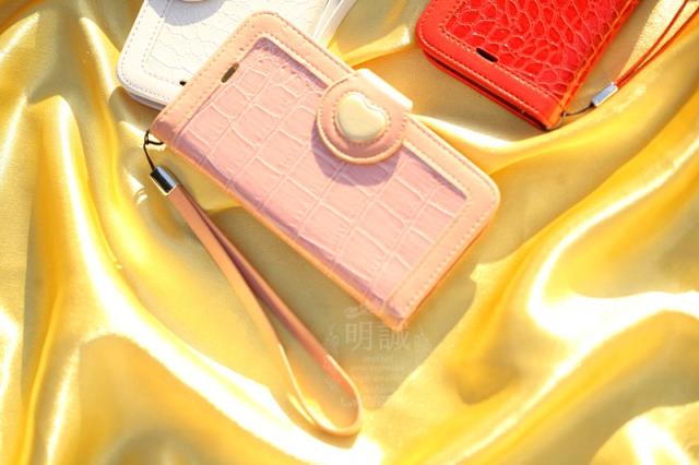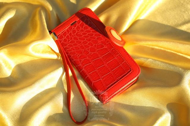 高級感あふれる光沢ワニ紋絽PU革を使っているの二つ折り手帳型ケース。