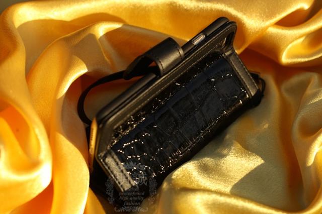 高級感あふれる光沢ワニ紋絽PU革ケース。