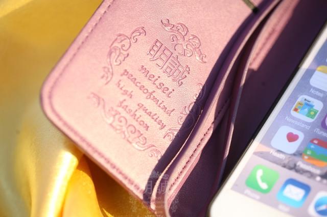 (スタンド機能)カード収納ポケット付いて、ストラップ付きなので、アクセサリー感覚で身につけることができます。側面下には当社の専門マーク型押して商品が映え、高級感がでて引き立ちます。