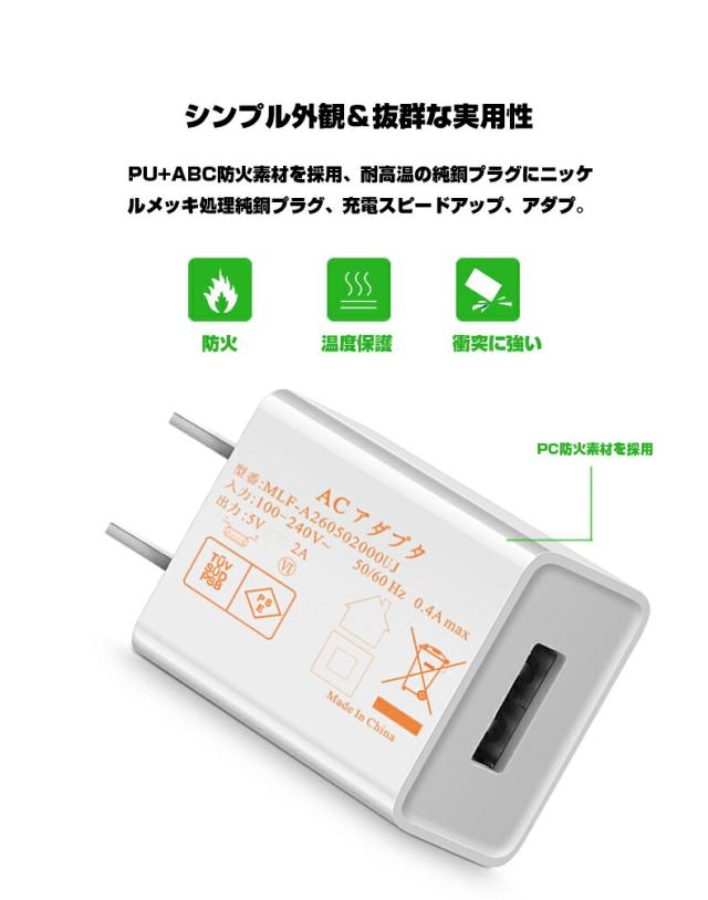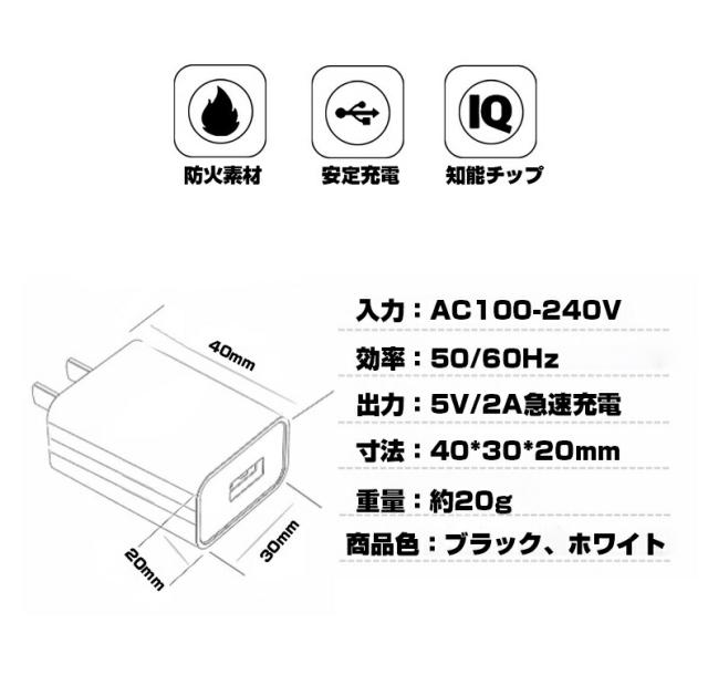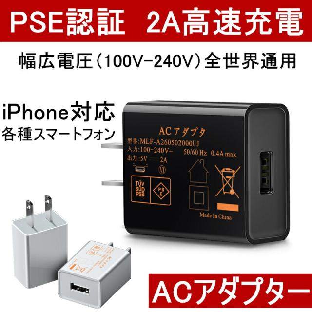 ACアダプター USB充電器 2A 高速充電 高品質 PSE認証 USB電源アダプター スマホ充電器 ACコンセント アンドロイド チャージャ 急速 超高出力 IOS/Android対応 送料無料