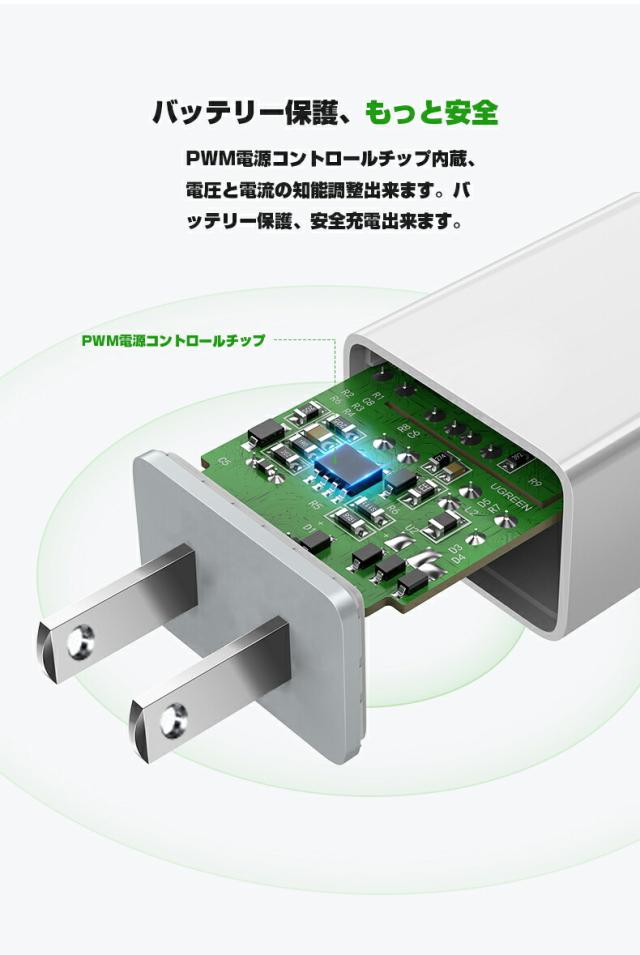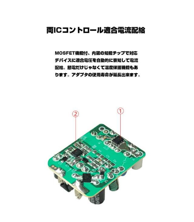 PWM電源コントロールチップ内蔵、電圧と電流の知能調整出来ます。バッテリー保護、安全充電出来ます。