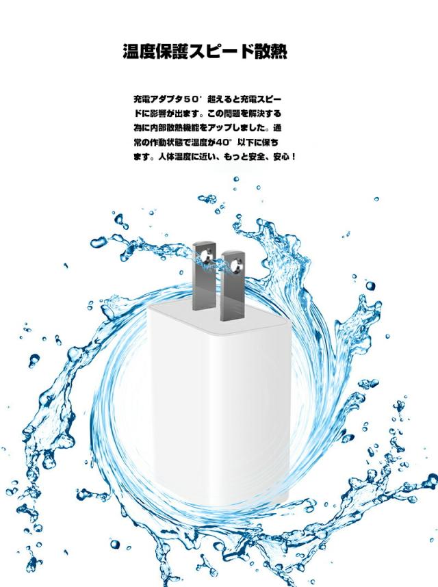 充電アダプタ50°超えると充電スピードに影響が出ます。この問題を解決する為に内部散熱機能をアップしました。通常の作動状態で温度が40°以下に保ちます。