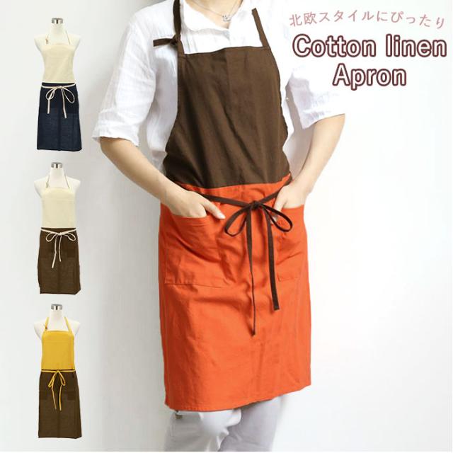 エプロン おしゃれ 通販 ナチュラル 安く て かわいい レディース ショート丈 大人 可愛い ワンピース 保育士 カフェエプロン 前結び シンプル 母の日 無地 コットン リネン ホワイト ネイビー イエロー コーヒー オレンジ キッチンエプロン