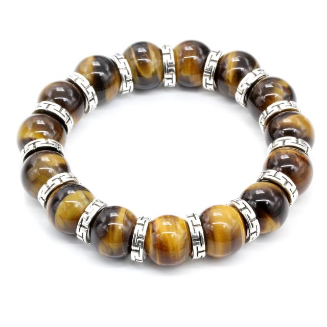 石輝 タイガーアイ 14mm ブレスレット 天然石 メタルビーズ パワーストーン 数珠 メンズ [b600]