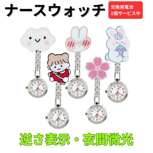 ナースウォッチ 時計 電池交換可 スマイルマーク クリップ かわいい イルカ ドルフィン 笑顔 スマイル 猫 いちご さくら パイナップル