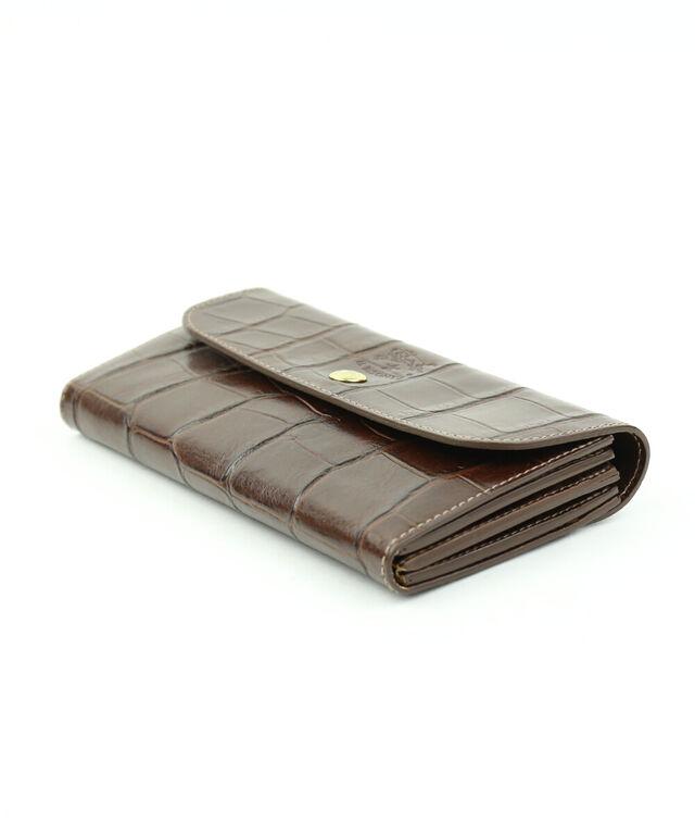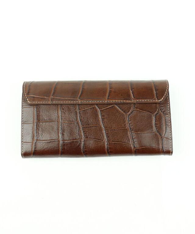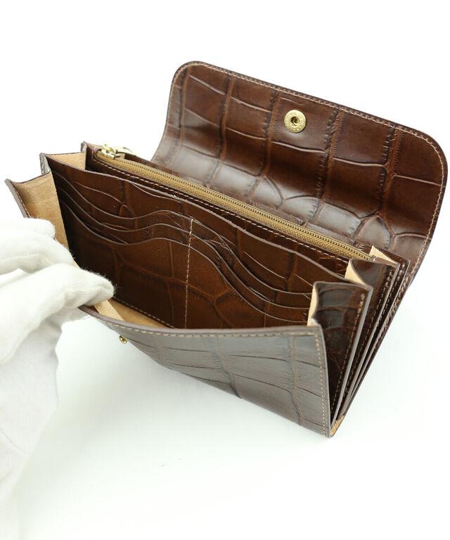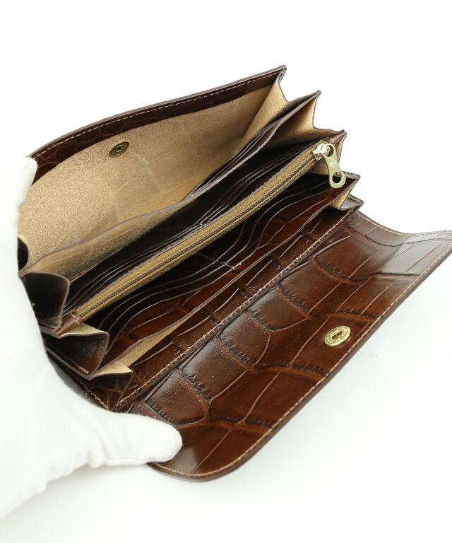 ラグジュアリーなムード漂うクロコダイルの型押しが施されたロングウォレット。