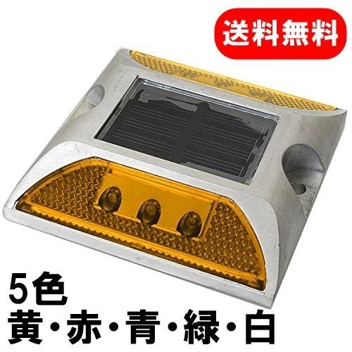 道路鋲 ソーラー LED ライト 常時点灯 点滅 防水 夜間自動点灯 道路点灯 誘導灯 防犯 駐車場 事故防止 アルミ合金 鋲 赤 青 黄 緑 白 縁