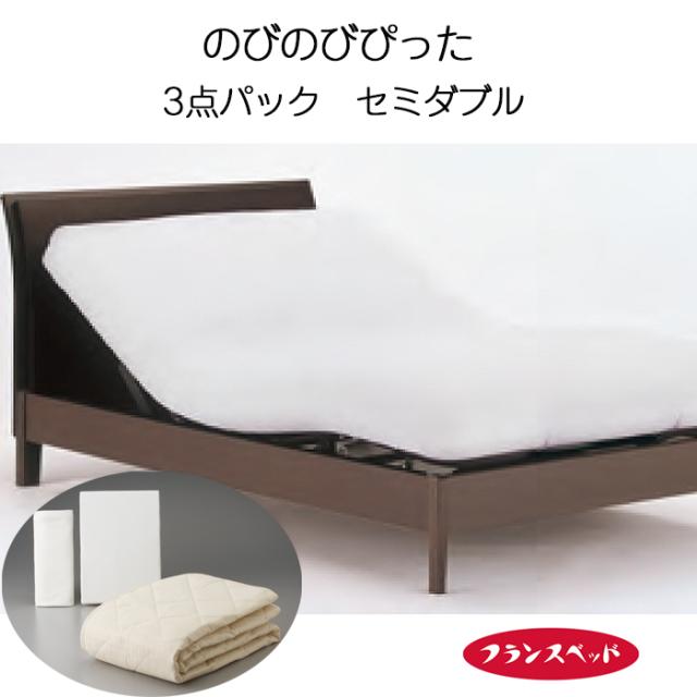 フランスベッド のびのびぴった 3点パック セミダブル ベットシーツ 枕カバー 敷きパッド リクライニングベッド 日本製 0357912