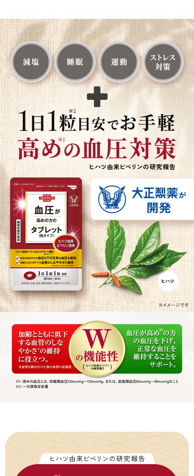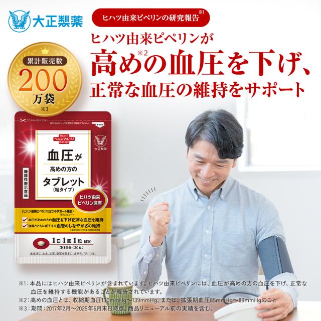 【レビューでポイント5%】公式 大正製薬 血圧が高めの方のタブレット(粒タイプ)ヒハツ抽出物 デキストリン ヒハツエキス 1袋 30粒入 1日1粒 機能性表示食品 血圧 サプリ サプリメント ヒハツ 改善