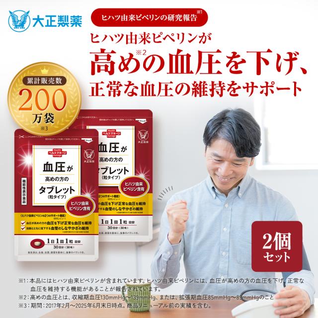 【レビューでポイント5%】公式 大正製薬 血圧が高めの方のタブレット 粒タイプ ヒハツ抽出物 デキストリン ヒハツエキス 1袋 30粒 2袋セット 機能性表示食品 血圧 サプリ サプリメント ヒハツ 改善 1日1粒