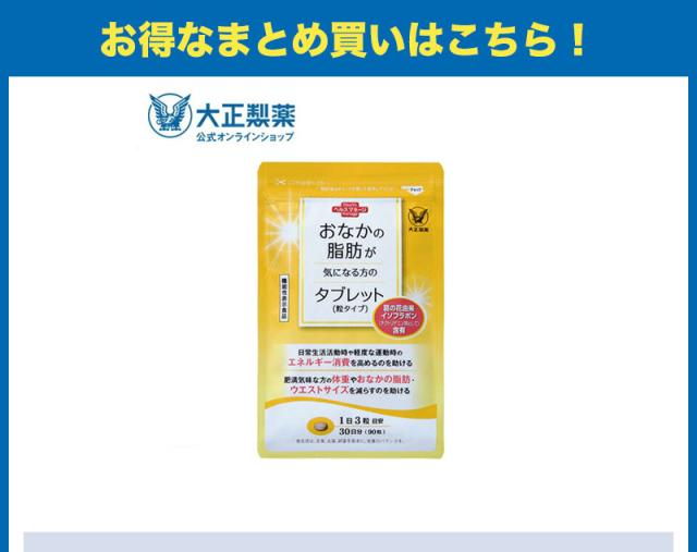 【レビューでポイント5%】公式 大正製薬 おなかの脂肪が気になる方のタブレット(粒タイプ) 1袋90粒 脂肪 サプリ 脂肪対策 内臓脂肪 イソフラボン 機能性表示食品 皮下脂肪 葛の花 サプリメント 脂肪分解促進 脂肪低減