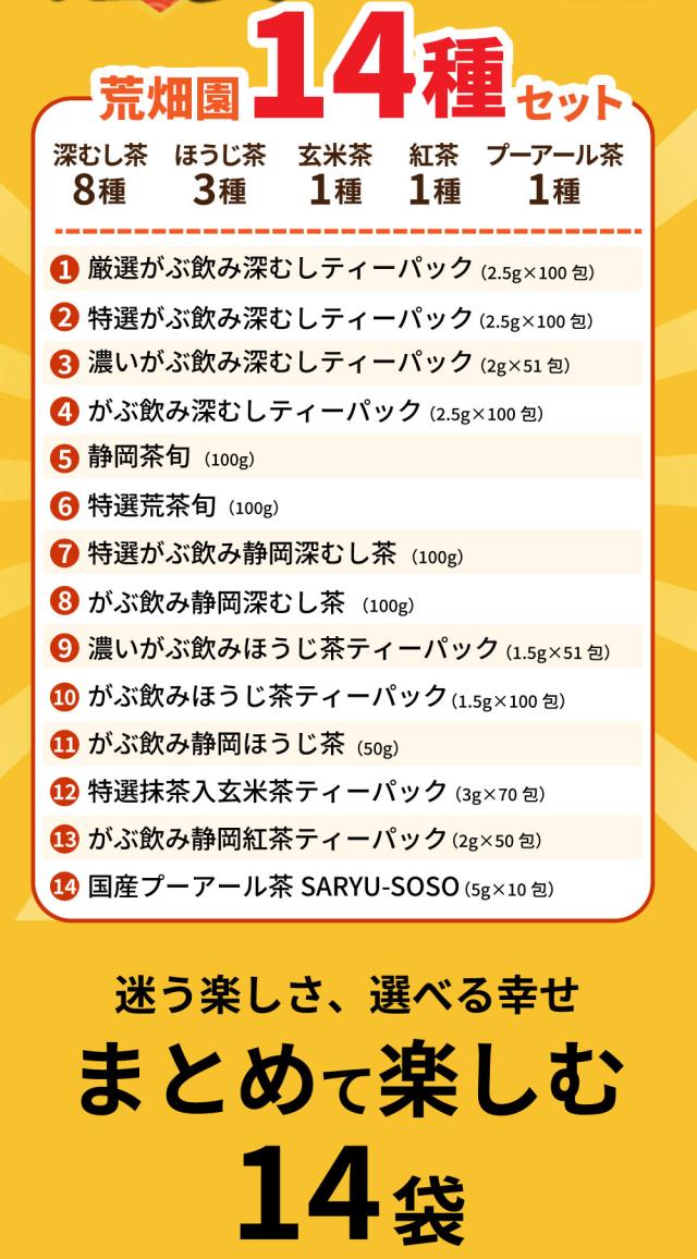 福袋 2026 14種大入り荒畑園セット お茶 お茶の葉 緑茶 静岡茶 詰め合せ がぶ飲み 新春 お徳用 茶葉 国産 fb_da