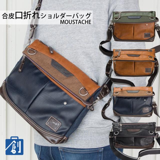 ショルダーバッグ メンズ 斜めがけ ブランド 小さめ 斜めがけショルダーバッグ ミニショルダー バッグ メンズ ショルダーバッグ ななめ メンズ カジュアル 2wayショルダーバッグ レディース MOUSTACHE ムスタッシュ 合皮口折れショルダーバッグ VMR-5696