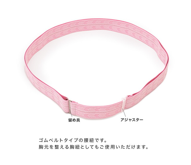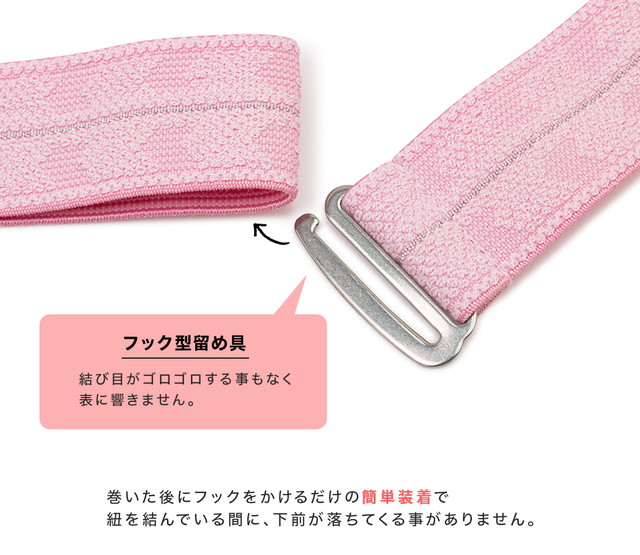 ゴム腰紐は巻いた後に留め具を留めるだけで簡単に長襦袢や着物を着付けることができます。