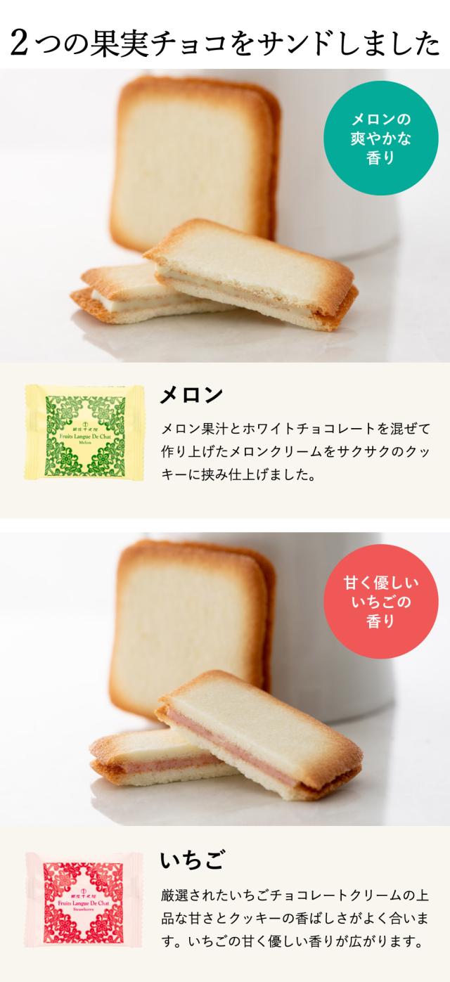 - ラングドシャの「メロン」と「いちご」 のフレーバーは初めてで、 斬新な味で美味しいです!