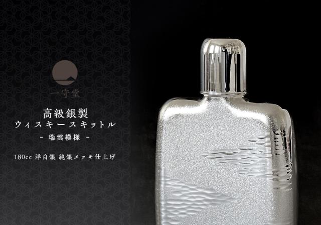 リムテー ギフト プレゼント 実用的 【RIMTAE ウィスキースキットル瑞雲】還暦祝い 退職 定年 上司 ウイスキーボトル 一守堂 スキットル 180cc 銀製 ヒップ フラスコ 漏斗付き 日本製 お酒 アウトドア 銀器 送料無料