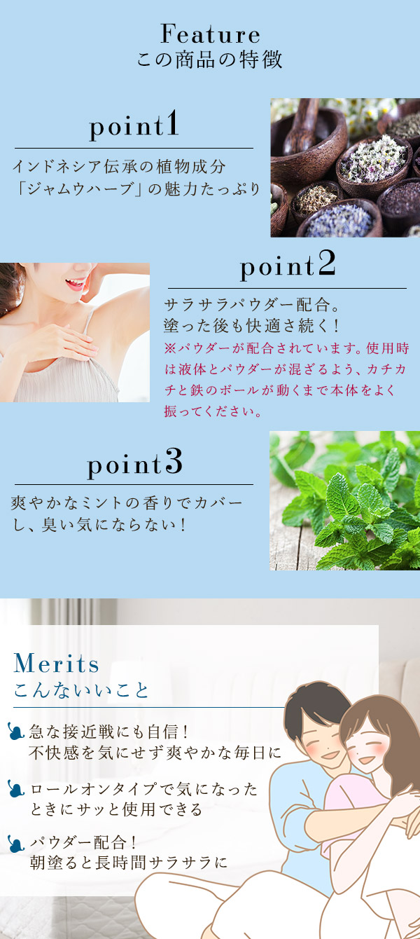 また、『ジャムウ・ハーバルロール』はワキのニオイの元が気になる、という方にオススメなロールオンタイプのジャムウ。