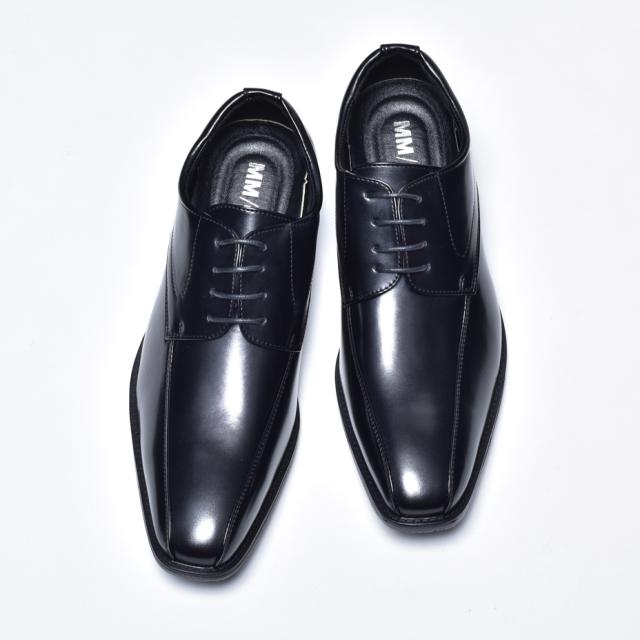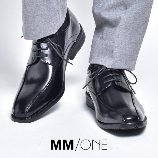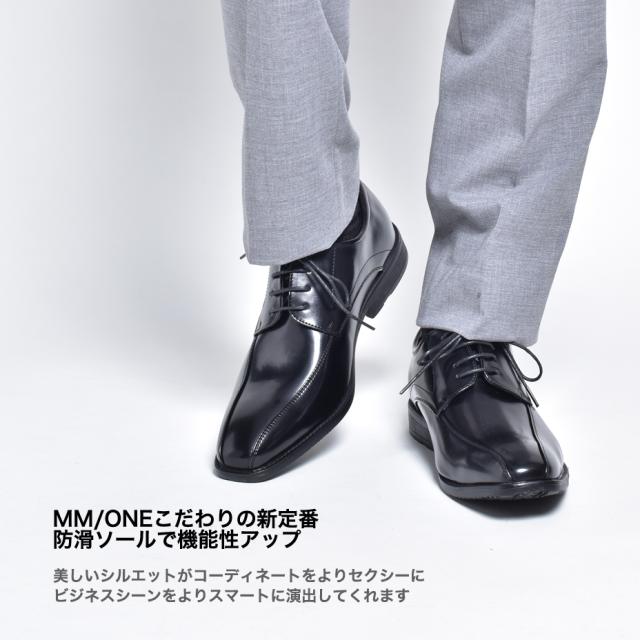 MM/ONE ビジネスシューズ メンズ 革靴 皮靴 ブランド 短靴 ドレスシューズ 外羽根 レースアップシューズ フォーマル 紳士靴 結婚式 冠婚葬祭 スーツ ブラック 黒 ロングノーズ ストレートチップ エムエムワン 送料無料