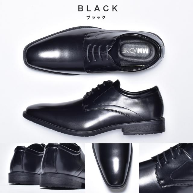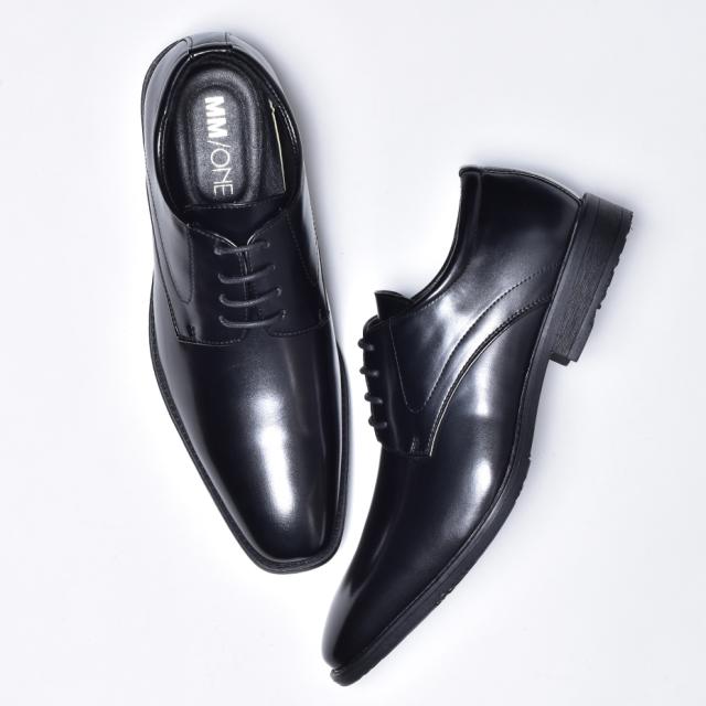 MM/ONE ビジネスシューズ メンズ 革靴 皮靴 ブランド 短靴 ドレスシューズ 外羽根 レースアップシューズ カジュアル フォーマル 紳士靴 結婚式 新郎 冠婚葬祭 スーツ ブラック 黒 ロングノーズ プレーントゥ エムエムワン 送料無料