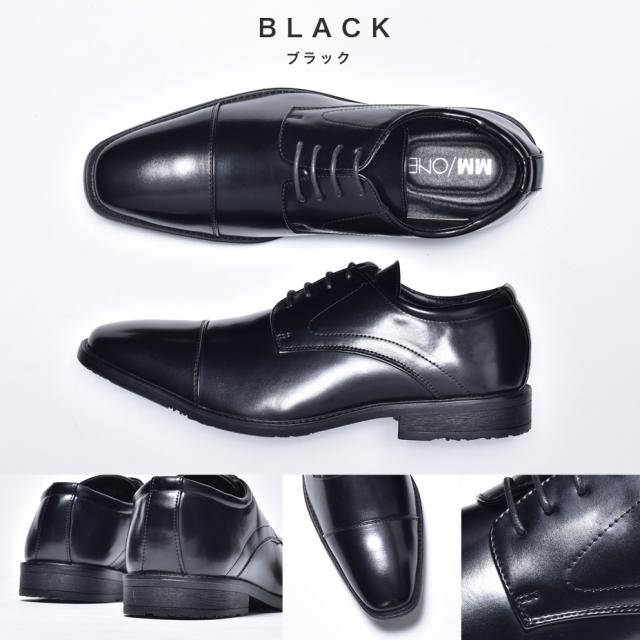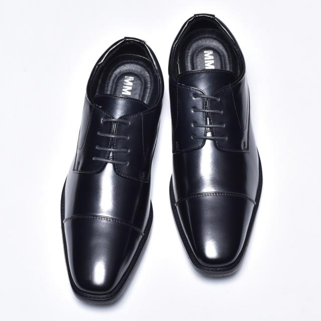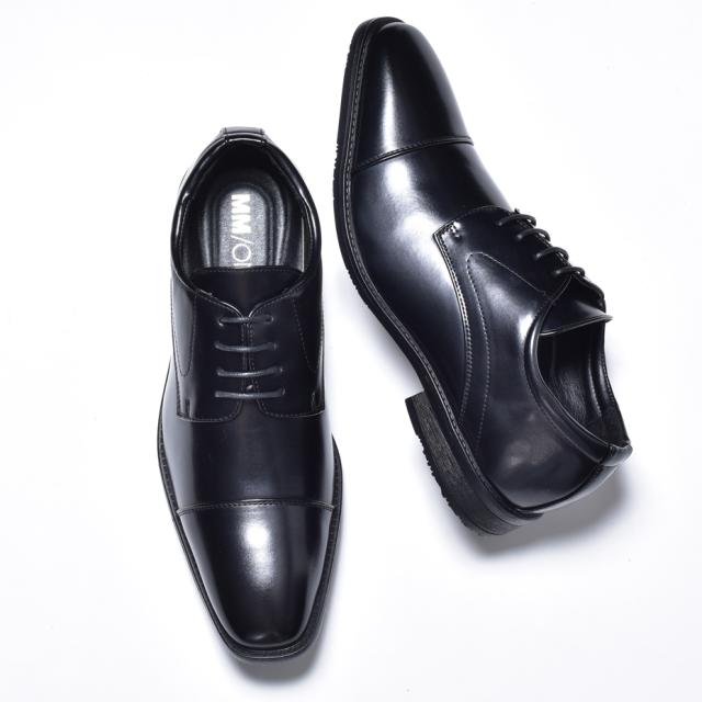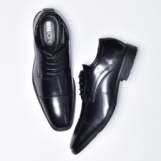 MM/ONE ビジネスシューズ メンズ 革靴 皮靴 ブランド 短靴 ドレスシューズ 外羽根 レースアップシューズ フォーマル 紳士靴 結婚式 冠婚葬祭 スーツ ブラック 黒 ロングノーズ ストレートチップ エムエムワン 送料無料