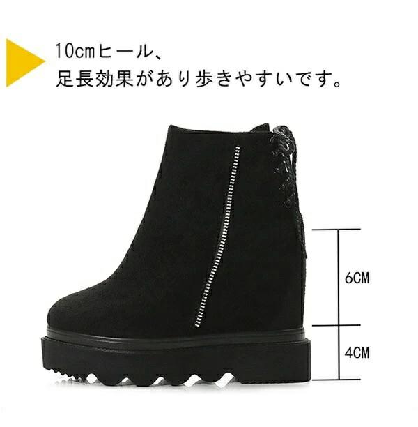 新作 厚底 ブーツ ヒール10cm ファスナー ラウンドトゥ ウエッジソール 黒 ショートブーツ ボア 美脚 スエード レディース ファッション シューズ 靴 裏起毛 20代 30代 40代 22.0 25.0 ブラック