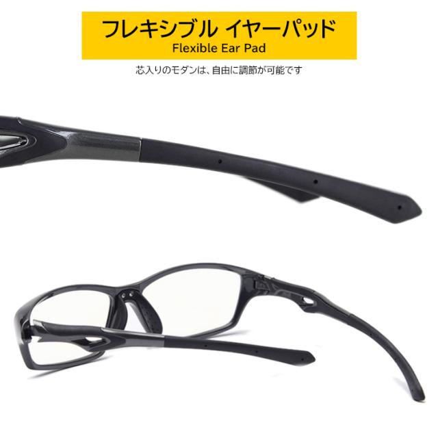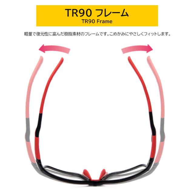 | BKRD:ブラックレッド/クリア MBKBU:マットブラックブルー/クリア GY:グレーメタリック/クリア RD:レッドメタリック/クリア | フレーム:プラスチック(TR90) テンプル:プラスチック(TR90) レンズ:プラスチック |
