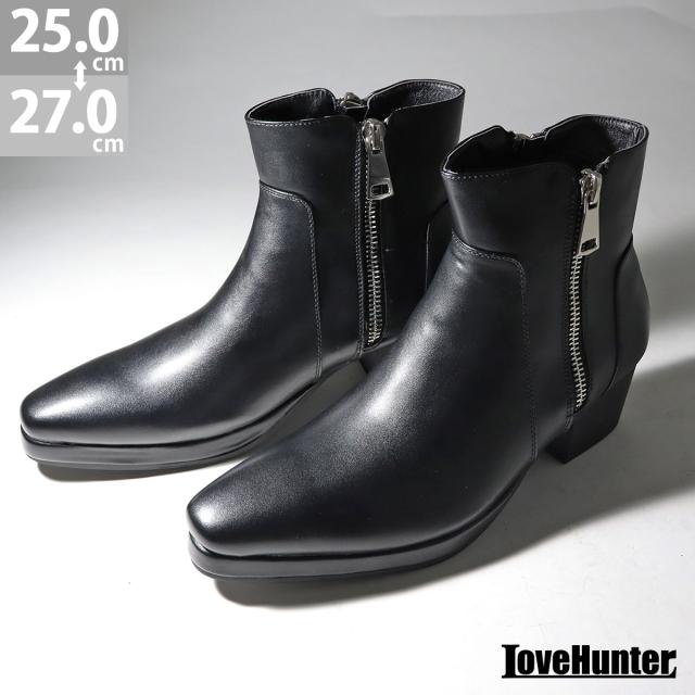 ブーツ ダブルジップ プラットフォームソール 厚底 プレーントゥ メンズ No.6830 25.0cm〜27.0cm 黒 ブラック LOVEHUNTER ラブハンター