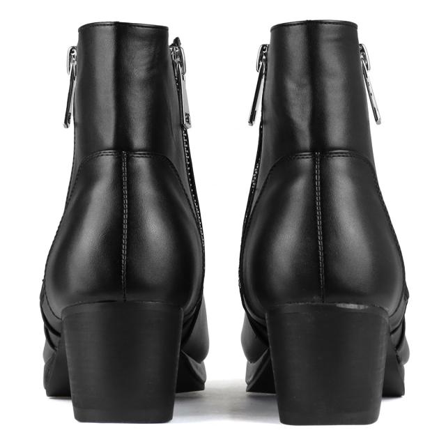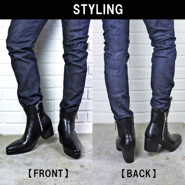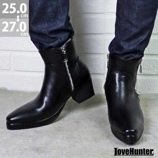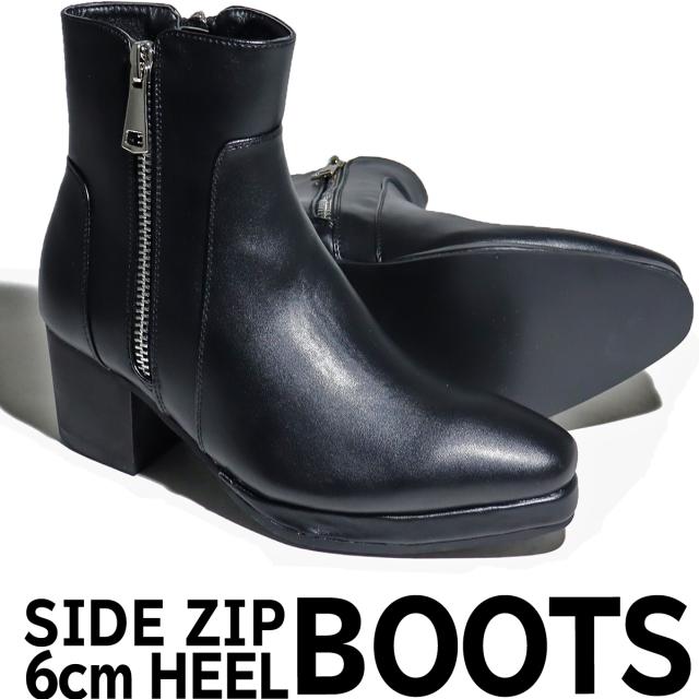 ブーツ メンズ ヒール 6.5cm 黒 サイドジップ レザー 合成皮革 プレーントゥ No.6830 おしゃれ バイク ラブハンター 冬
