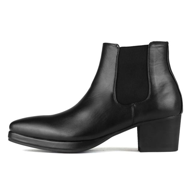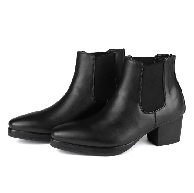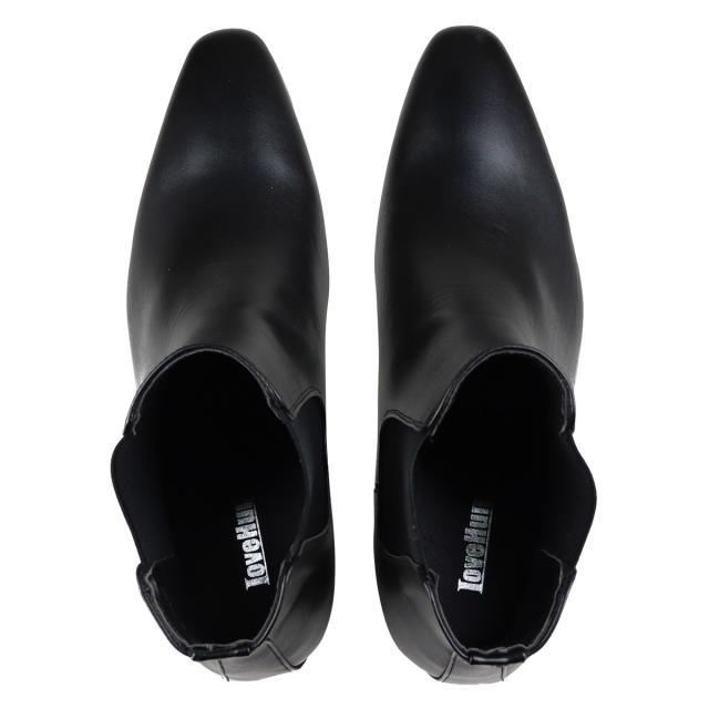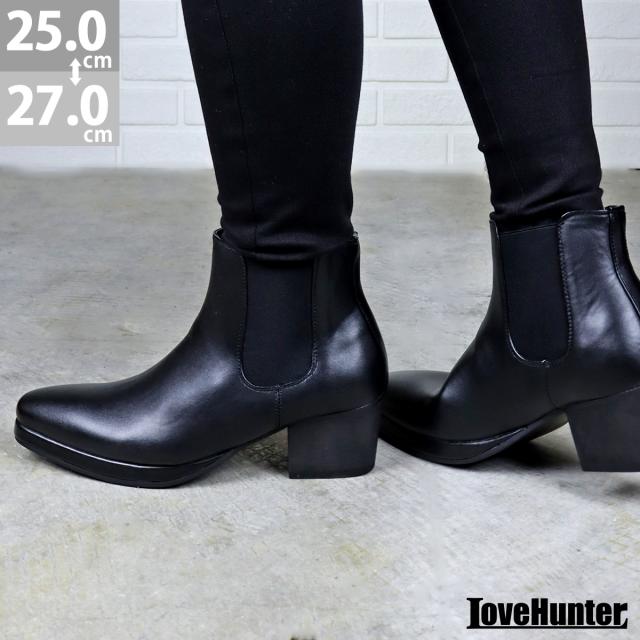 ブーツ メンズ サイドゴア 黒 ヒール 6.5cm レザー 合成皮革 プレーントゥ No.6833 ブラック ラブハンター おしゃれ 冬