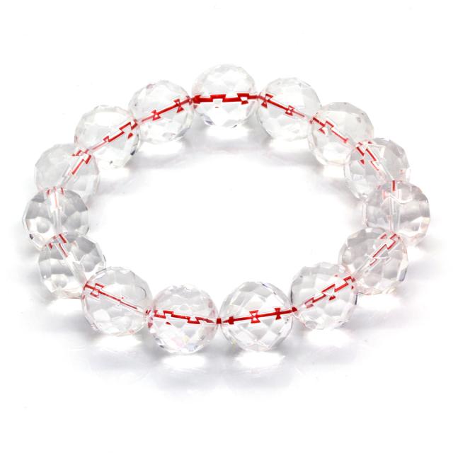 石輝 天然石 64面カット 水晶 14mm ブレスレット 赤い糸 パワーストーン [b592]