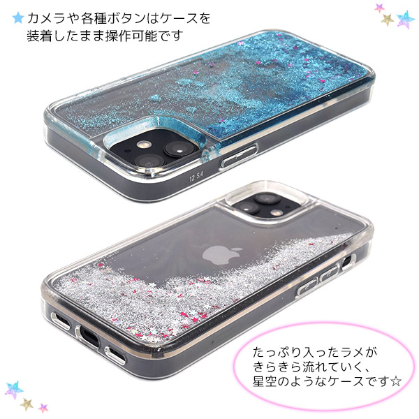 スマートフォンケース iPhone12mini用 ラメが流れる 星空ケース 装着簡単 携帯ケース 背面 保護カバー ファンシー スマホカバー お洒落 スマホケース 背面保護 バックカバー SoftBank au docomo 可愛い オシャレ おしゃれ 個性的
