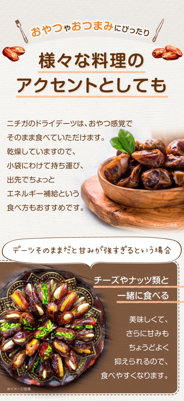 - 栄養たっぷりのドライデーツが、お得に購入できました。毎朝ヨーグルトといっしょに食べています。美味しくて満足です。