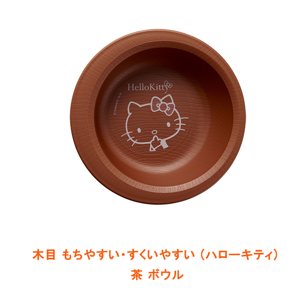 木目 もちやすい・すくいやすい (ハローキティ) 茶 ボウル ウェルファン (食器 かわいい) 介護用品